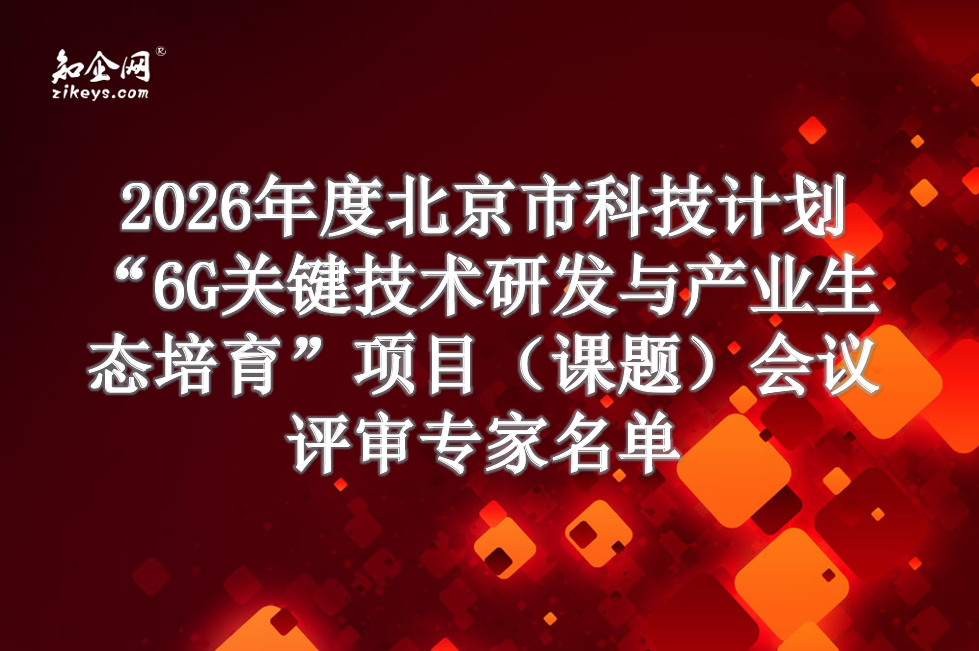“6G关键技术研发与产业生态培育”项目(课题)兹定于2026-02-27召开专家评审会议,根据《北京市科学技术委员会、中关村科技园区管理委员会科技项目评审专家库管理办法》(京科资发〔2023〕42 号)文件要求,现将参加会议评审的专家名单公布如下: